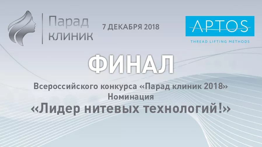 07 декабря 2018г. в рамках VII Национального конгресса «Пластическая хирургия, эстетическая медицина и косметология» определится финалист номинации «Лидер нитевых технологий 2018» и победитель всероссийского конкурса «Парад клиник 2018».