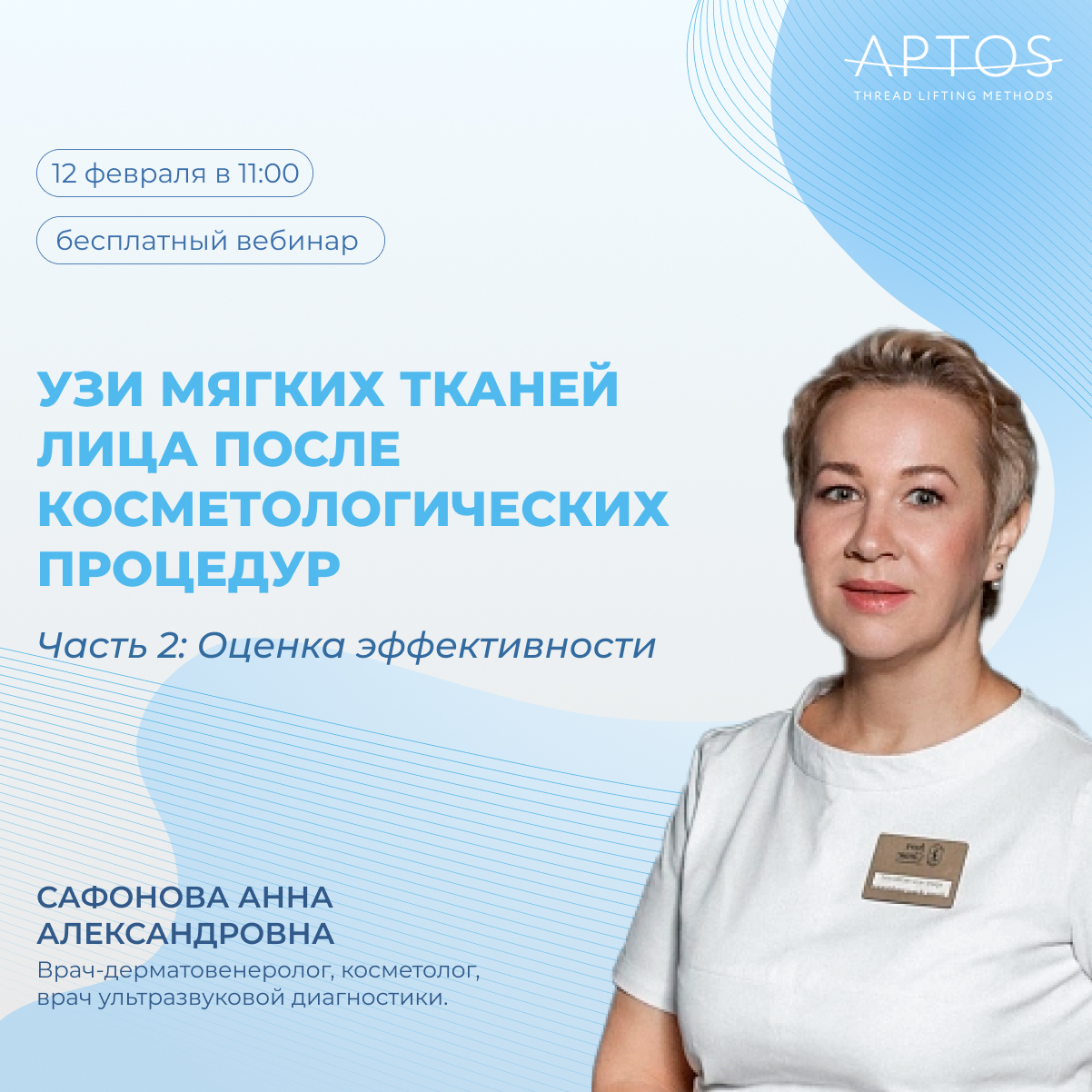 Уважаемые коллеги! Приглашаем вас на бесплатный вебинар АПТОС «УЗИ мягких тканей лица после косметологических процедур. Часть 2: Оценка эффективности»!