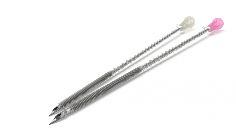 Light Lift Spring. Нить рассасывающаяся АПТОС из сополимера L-лактида с ε-капролактоном, спиралевидная, метрического размера 3,5, длиной 440 мм и 470 мм, с иглами инъекционными размером 0,9 мм х 90 мм и 1,1 мм х 100 мм, стерильная