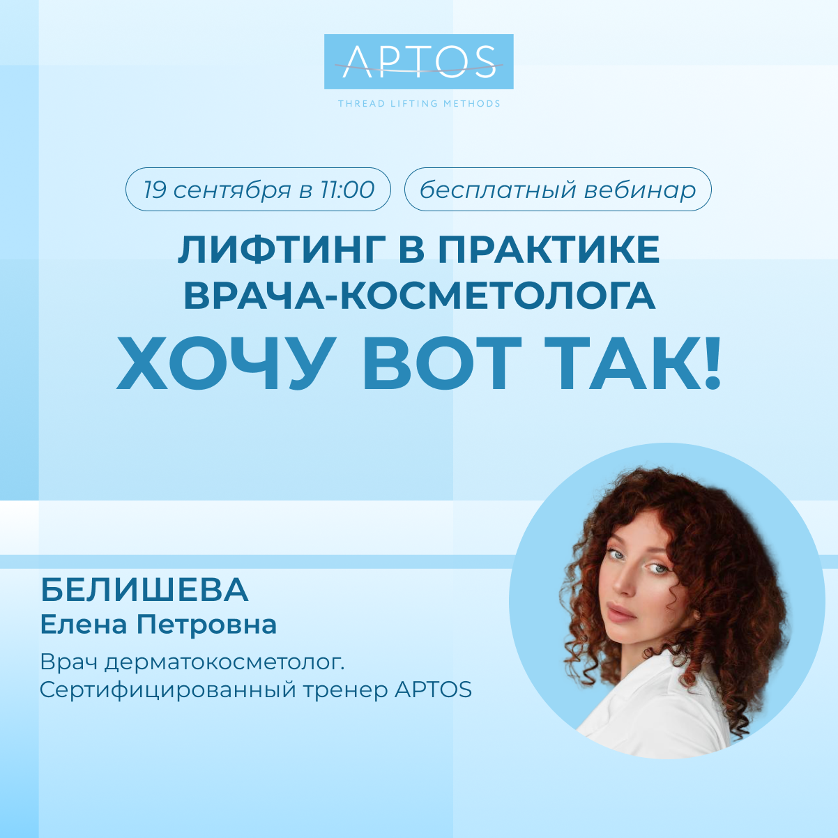 Приглашаем вас принять участие в бесплатном вебинаре АПТОС «Лифтинг в практике врача-косметолога. «Хочу вот так!»