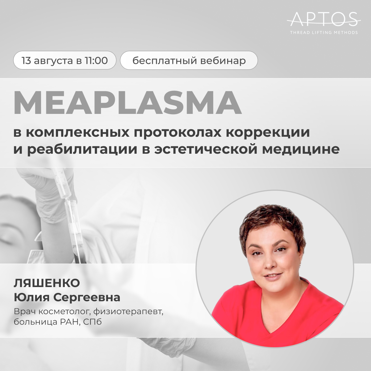 Приглашаем вас на бесплатный вебинар АПТОС «MeaPlasma в комплексных протоколах коррекции и реабилитации в эстетической медицине»