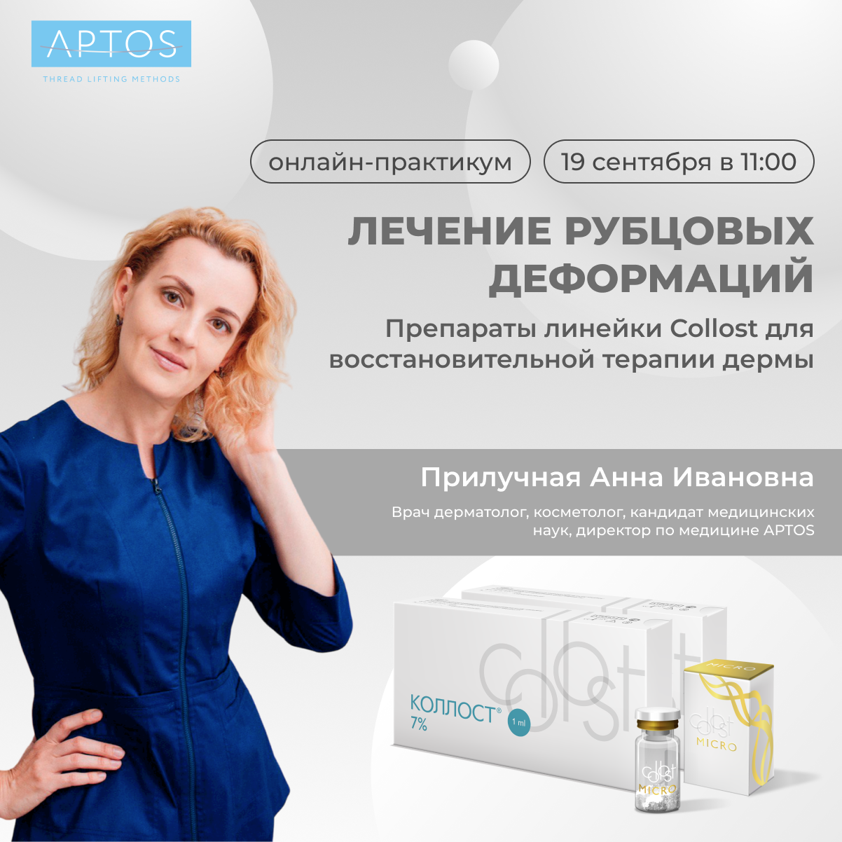 Приглашаем вас на онлайн-практикум из процедурной АПТОС «Препараты линейки Collost для восстановительной терапии дермы. Лечение рубцовых деформаций»!