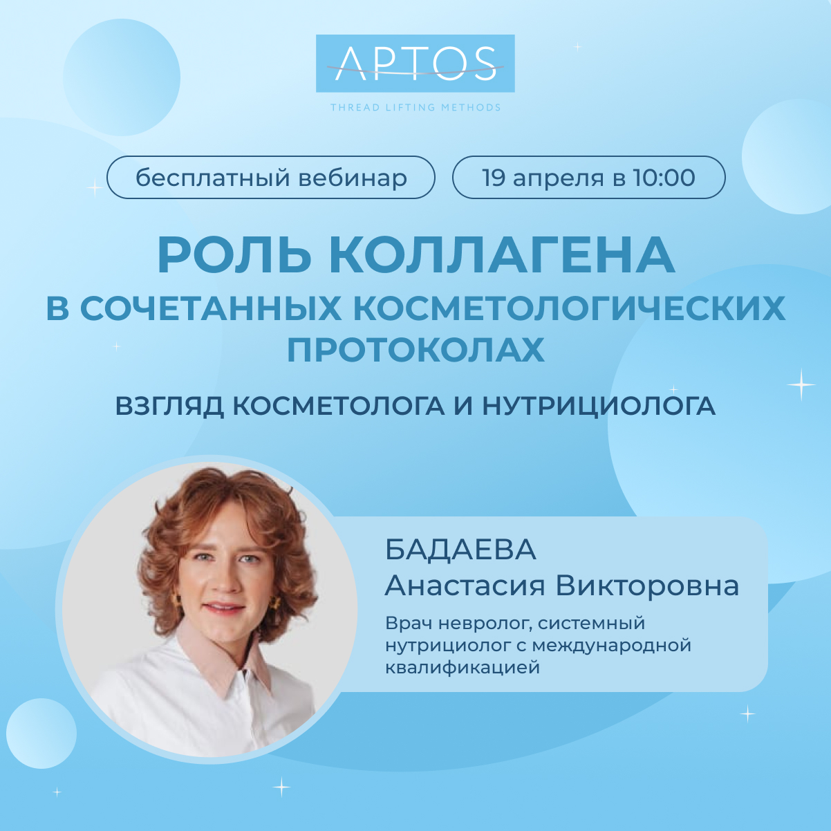 Приглашаем вас на бесплатный вебинар АПТОС «Роль коллагена в сочетанных косметологических протоколах: взгляд косметолога и нутрициолога»