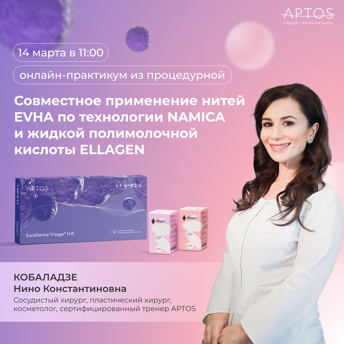 Приглашаем вас на бесплатный онлайн-практикум из процедурной «Совместное применение нитей Excellence Visage HA по технологии NAMICA и жидкой полимолочной кислоты Ellagen»